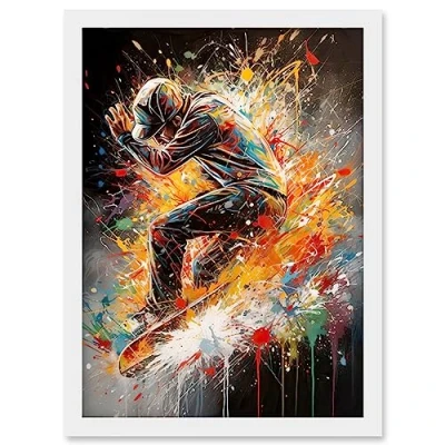 Artery8 Skateboarder Vibrant Splat Paint Action Shot Artwork Framed Wall Art Print A4