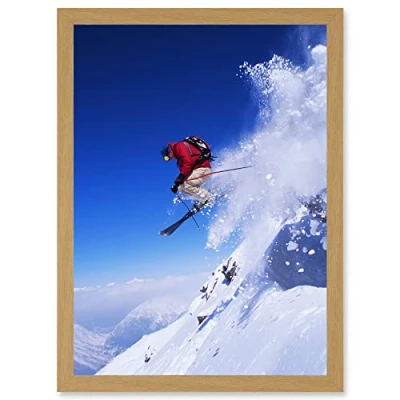 Artery8 Skier Ski Jumping Snow Sport Sky A4 Artwork Framed Wall Art Print