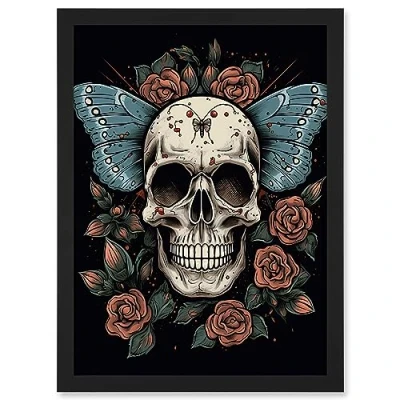 Artery8 Skull Moth and Roses Tattoo Ink Body Art Rockabilly Americana 50s Artwork Framed A3 Wall Print
