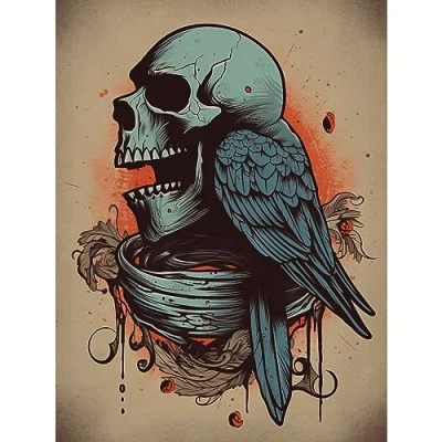 Artery8 Skull Raven Wings Old School USA Tattoo Ink Body Rockabilly Americana 50s Extra Large XL Wall Art Poster Print