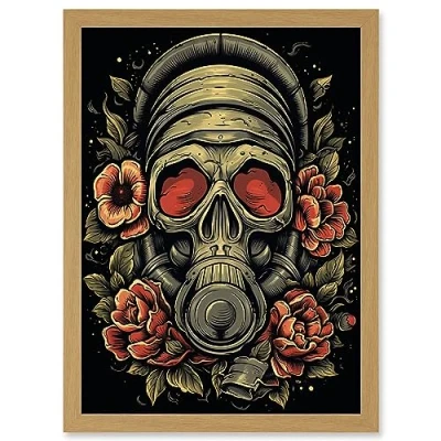 Artery8 Skull Roses and Gas Mask Tattoo Ink Body Art Rockabilly Americana 50s Artwork Framed A3 Wall Print