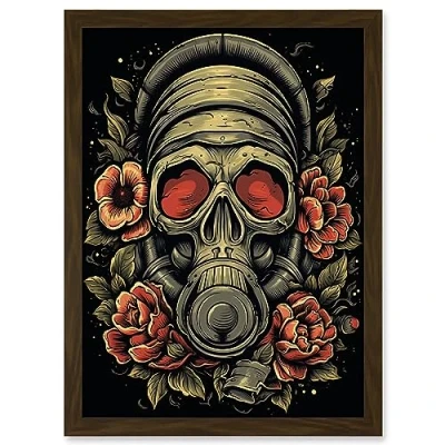Artery8 Skull Roses and Gas Mask Tattoo Ink Body Art Rockabilly Americana 50s Artwork Framed A3 Wall Print
