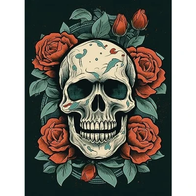 Artery8 Skull Roses Old School USA Tattoo Ink Body Art Rockabilly Americana 50s Extra Large XL Wall Poster Print