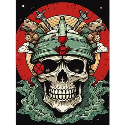 Artery8 Skull Samurai Hat Old School USA Tattoo Ink Body Rockabilly Americana 50s Extra Large XL Wall Art Poster Print