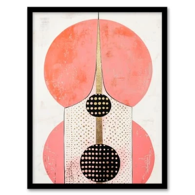 Artery8 Skyscraper Circles Polka Dot Pink Gold Abstract Living Room Artwork Framed Wall Art Print A4
