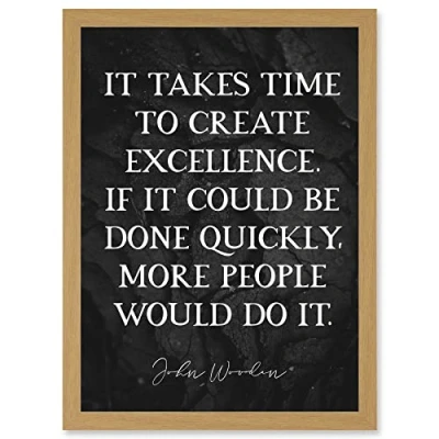 Artery8 Slate Quote John Wooden Takes Time To Create Excellence Basketball Coach Inspiring Sports Artwork Framed Wall Art Print A4