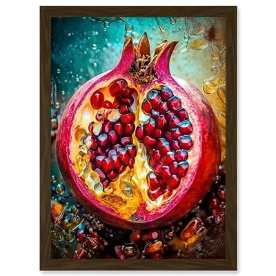 Artery8 Sliced Pomegranate Fruit Photorealistic Painting Artwork Framed Wall Art Print A4
