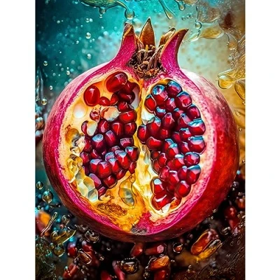 Artery8 Sliced Pomegranate Fruit Photorealistic Painting Large Wall Art Poster Print Thick Paper 18X24 Inch