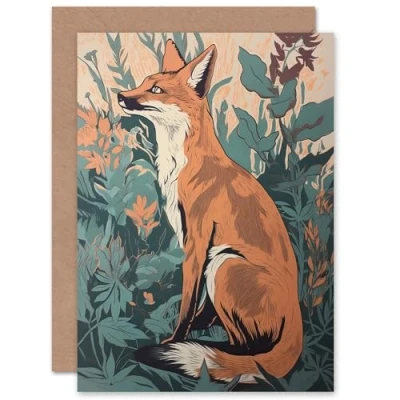 Artery8 Sly Fox Vintage Botanical for Him or Her Man Woman Birthday Thank You Congratulations Blank Art Greeting Card