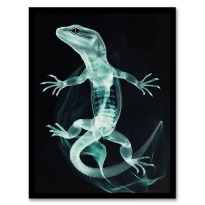 Artery8 Smoke and Xray Effect Lizard Electric Blue Living Room Artwork Framed Wall Art Print A4