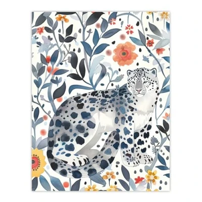 Artery8 Snow Leopard Blue Orange Floral Watercolour Living Room Large Wall Art Poster Print Thick Paper 18X24 Inch