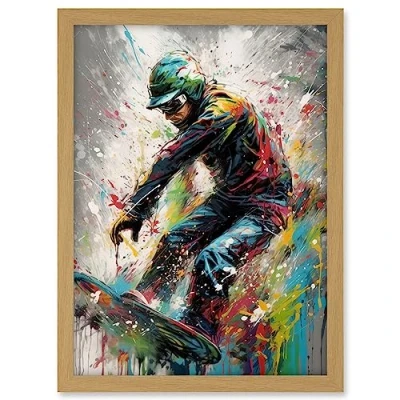 Artery8 Snowboarding Extreme Sport Athlete Paint Splat Artwork Framed A3 Wall Art Print