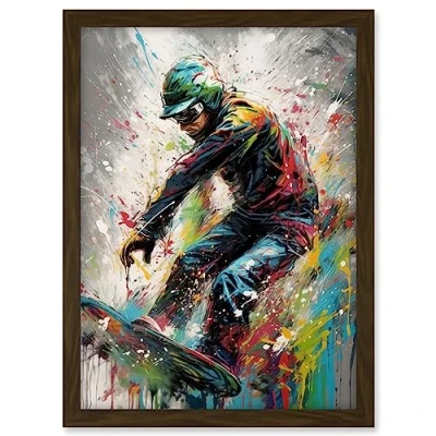 Artery8 Snowboarding Extreme Sport Athlete Paint Splat Artwork Framed A3 Wall Art Print