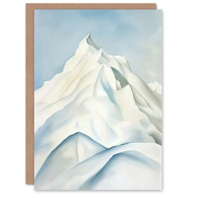 Artery8 Snowcapped Mountain Painting Icy White Simple Greeting Birthday Card Him Her All Blank