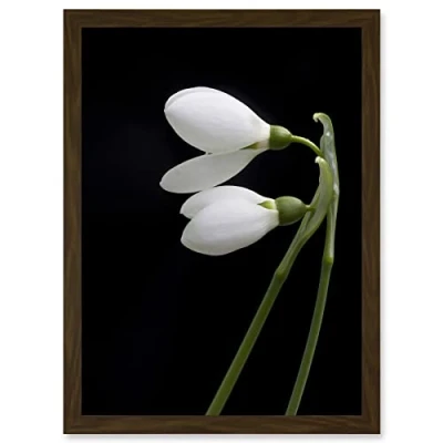 Artery8 Snowdrops Spring Flowers Bloom White Black A4 Artwork Framed Wall Art Print