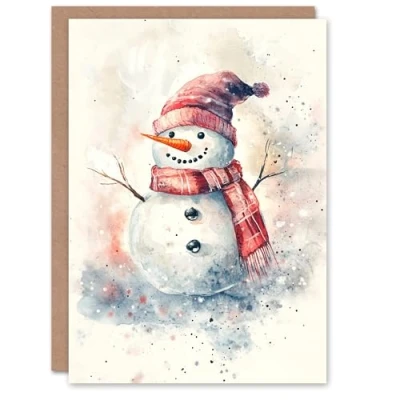 Artery8 Snowman Wooly Hat Scarf Light Blank For Him Or Her Art Xmas Festive Christmas Card
