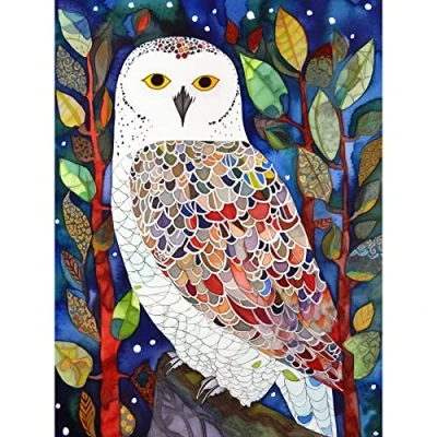 Artery8 Snowy Owl Between Tree Branches Folk Art Extra Large XL Wall Poster Print