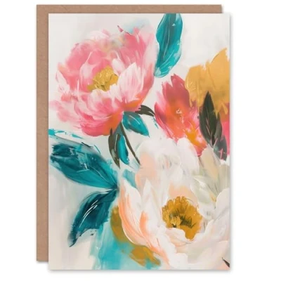 Artery8 Soft Blushing Peonies Painting Floral Bouquet Greeting Birthday Card Him Her All Blank