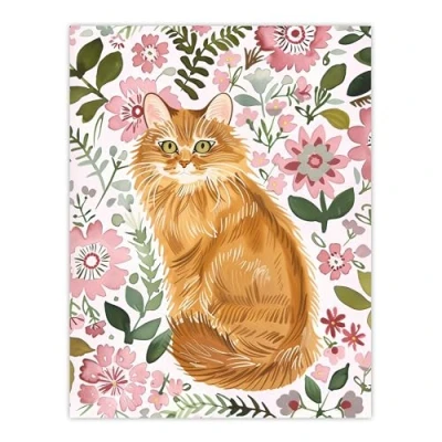 Artery8 Somali Cat Lover Pink Flower Rustic Pattern Living Room Extra Large XL Wall Art Poster Print