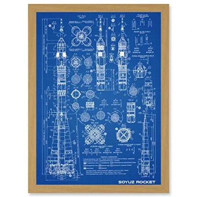 Artery8 Soyuz Rocket USSR Soviet Space Blueprint Plan A4 Artwork Framed Wall Art Print