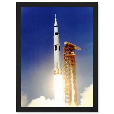 Artery8 Space Apollo 11 Launch Saturn V Rocket Blast Thrust Flame USA A4 Artwork Framed Wall Art Print