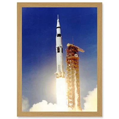 Artery8 Space Apollo 11 Launch Saturn V Rocket Blast Thrust Flame USA A4 Artwork Framed Wall Art Print