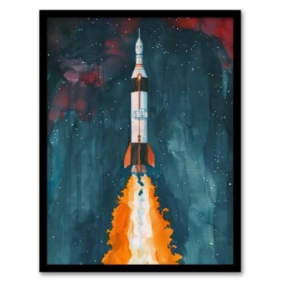 Artery8 Space Apollo 11 Saturn V Rocket Launch Painting Living Room Artwork Framed Wall Art Print A4