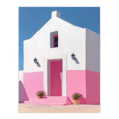 Artery8 Spanish Pink Minimalist Architecture Painting Living Room Large Wall Art Poster Print Thick Paper 18X24 Inch