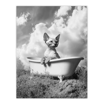 Artery8 Sphinx in Bathtub Black White Surreal Cat Lover Bathroom Toilet Large Wall Art Poster Print Thick Paper 18X24 Inch