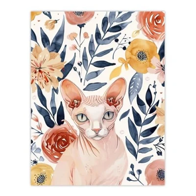 Artery8 Sphynx Cat Lover Floral Watercolour Portrait Living Room Extra Large XL Wall Art Poster Print