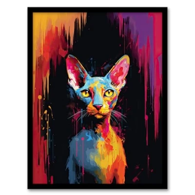Artery8 Sphynx Cat Lover Gift Pet Portrait Colourful Artwork Painting Framed Wall Art Print A4