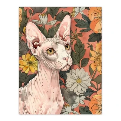 Artery8 Sphynx Cat Lover in Flower Garden Pet Portrait Living Room Extra Large XL Wall Art Poster Print