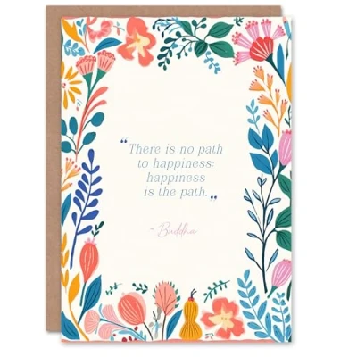Artery8 Spiritual Birthday Card Happiness is the Path Buddhist Mindfulness Quote Blank For Him Or Her