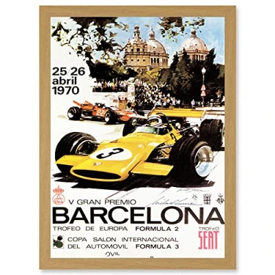 Artery8 Sport Advert Motor Race Barcelona Spain Formula Gran Premio A4 Artwork Framed Wall Art Print