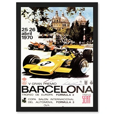 Artery8 Sport Advert Motor Race Barcelona Spain Formula Gran Premio A4 Artwork Framed Wall Art Print