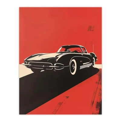Artery8 Sports Car Bold Red Black White High Contrast For Living Room Large Wall Art Poster Print Thick Paper 18X24 Inch