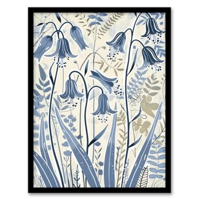 Artery8 Spring Bluebells Bright Flower Painting Botanical Living Room Artwork Framed Wall Art Print A4