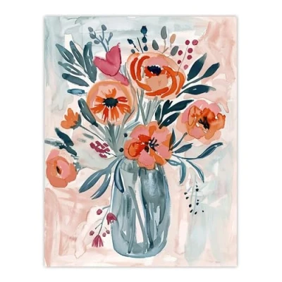 Artery8 Spring Flower Bouquet Pink Blue Boho Floral Vase Living Room Large Wall Art Poster Print Thick Paper 18X24 Inch