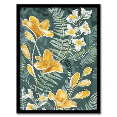 Artery8 Spring Freesia Yellow Flowers Botanical Painting Living Room Artwork Framed Wall Art Print A4