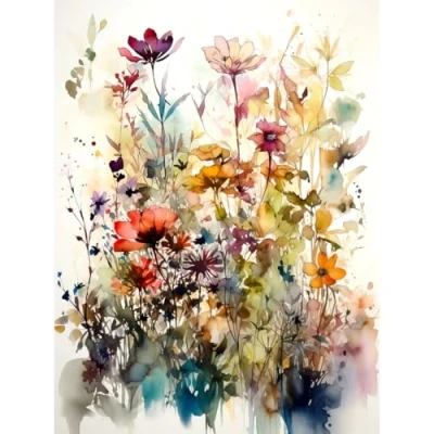 Artery8 Spring Wild Flowers Watercolour Colourful Floral Blooms Painting Large Wall Art Poster Print Thick Paper 18X24 Inch