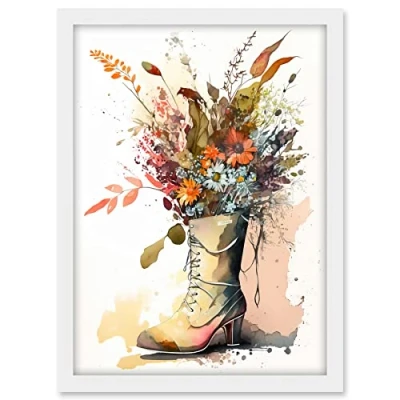 Artery8 Spring Wildflower Bouquet in High Heel Army Boot Artwork Framed A3 Wall Art Print
