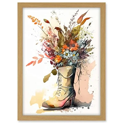 Artery8 Spring Wildflower Bouquet in High Heel Army Boot Artwork Framed A3 Wall Art Print