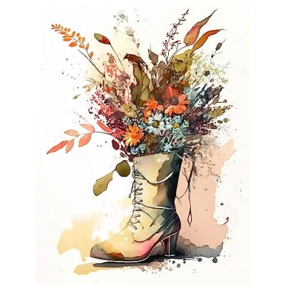 Artery8 Spring Wildflower Bouquet in High Heel Army Boot Extra Large XL Wall Art Poster Print