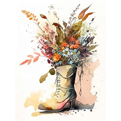Artery8 Spring Wildflower Bouquet in High Heel Army Boot Large Wall Art Poster Print Thick Paper 18X24 Inch