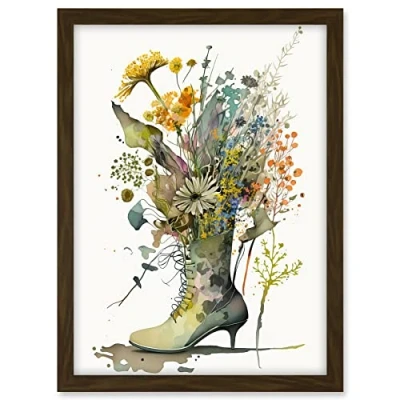 Artery8 Spring Wildflower Bouquet Stiletto Military Boot Artwork Framed A3 Wall Art Print