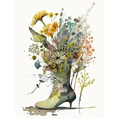 Artery8 Spring Wildflower Bouquet Stiletto Military Boot Large Wall Art Poster Print Thick Paper 18X24 Inch