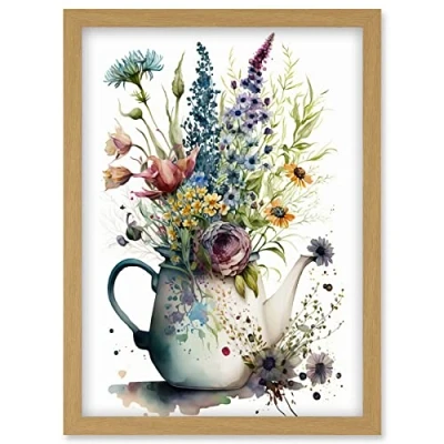 Artery8 Spring Wildflower Floral Bouquet in a Teapot Vase Artwork Framed Wall Art Print A4
