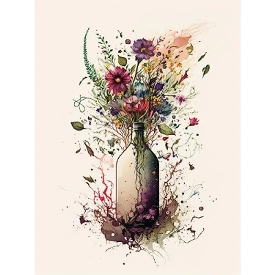 Artery8 Spring Wildflower Floral Bouquet in a Wine Bottle Extra Large XL Wall Art Poster Print