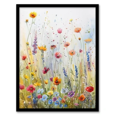 Artery8 Spring Wildflower Meadow Watercolour Painting Living Room Artwork Framed Wall Art Print A4