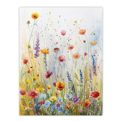 Artery8 Spring Wildflower Meadow Watercolour Painting Living Room Large Wall Art Poster Print Thick Paper 18X24 Inch